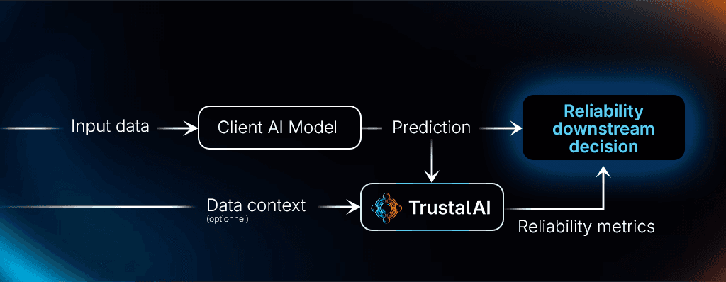 TrustalAI Vision estimates the reliability of each prediction in real-time and plug & play, without modifying your existing model.